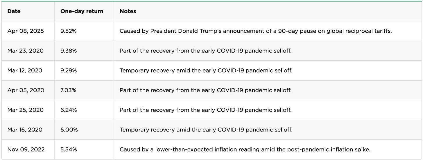 On Apr. 8, 2025, the S&P 500 index jumped by more than 9.5%, after President Donald Trump announced that he was partially suspending new U.S. tariffs on most other countries for 90 days.